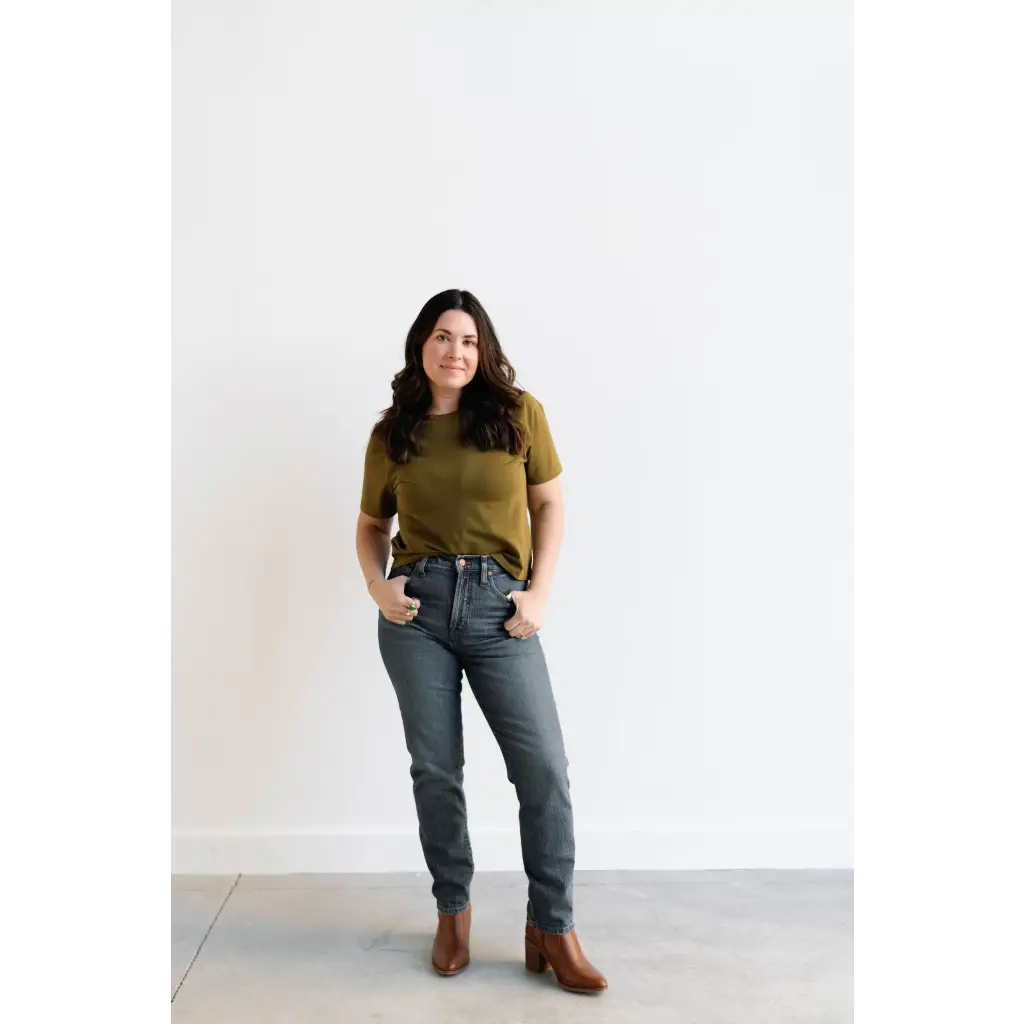 Say hello to the Mom Crop - a boxy tee designed to hit at the right place, making it a stylish and casual top for women of all ages. Rock it as a front tuck or, for those with a longer torso, let it hit right at the top of your mom jeans.